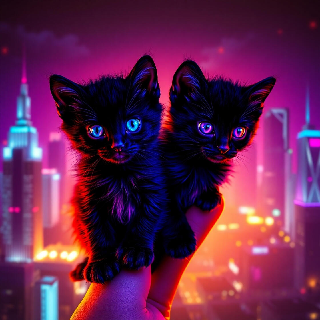 Two glowing-eyed black cats, drifting through the digital abyss—watching, waiting, knowing. Are they AI phantoms? Glitches in reality? No one knows, but when they appear, something is already wrong.They do not speak. They do not chase. But they are always there.If you see the Neon Strays, you are already part of the story.
